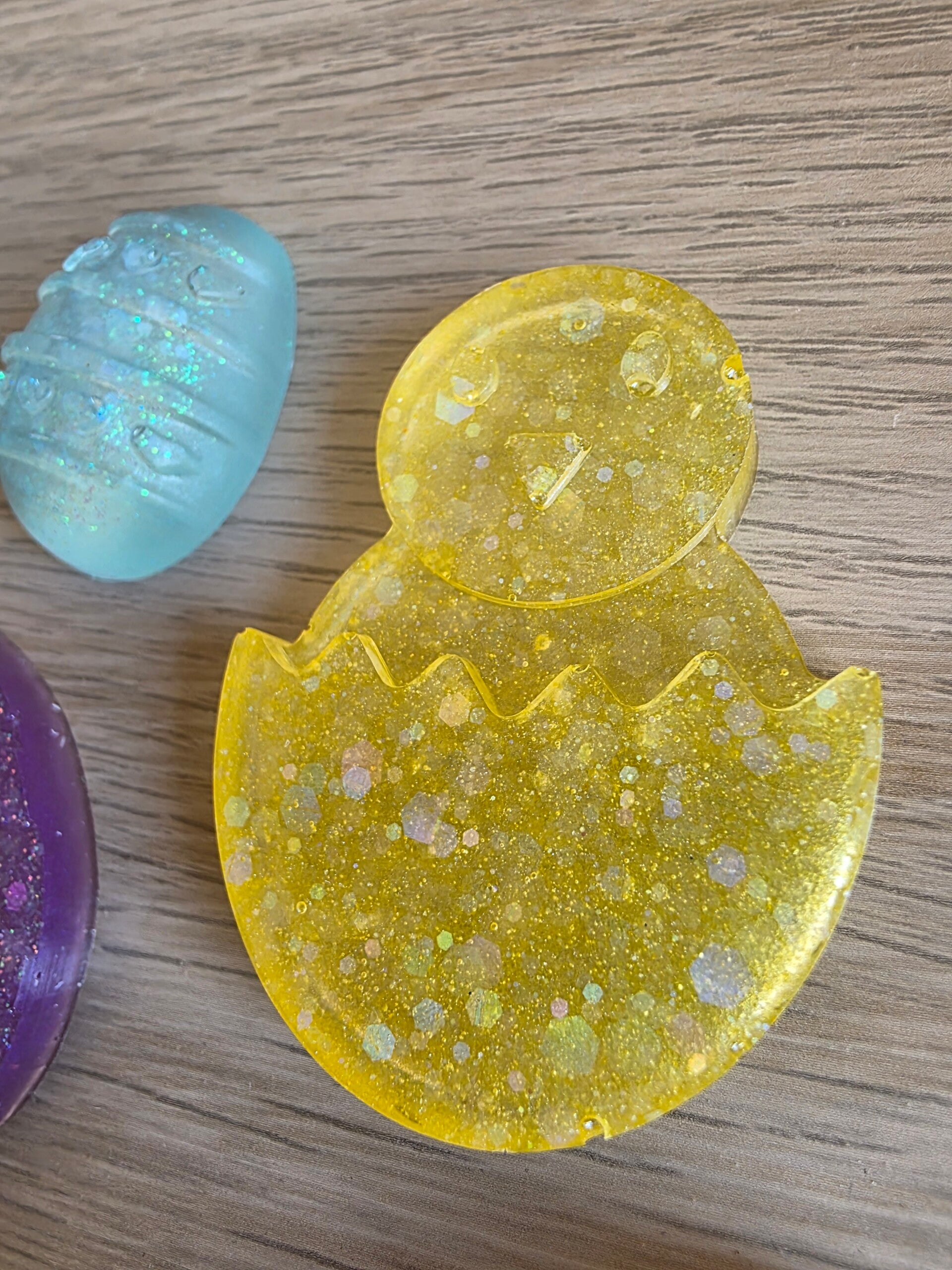 Van deze fantastische Paasset is er maar 1. De figuren zijn gemaakt van Epoxy en ze bevatten heel veel prachtige glitters.