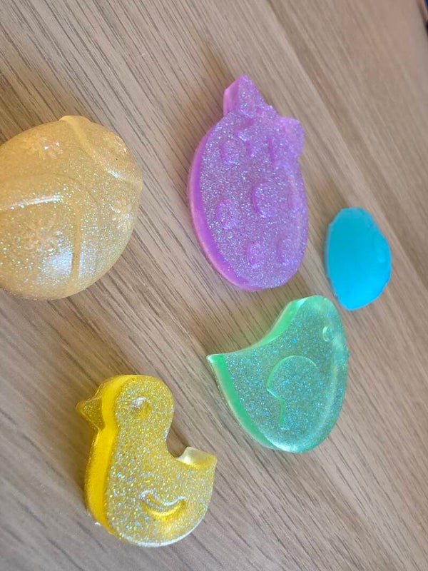 Loose parts zijn een fantastische toevoeging aan een speel/ werkplek. Deze prachtige loose parts zijn gemaakt van epoxy. De Paasfiguren zijn licht doorzichtig met kleurige glitters wat bijvoorbeeld een fantastisch effect geeft op een lichttafel of in een watertafel. En in een zandtafel geeft dit een super tof stempel effect.