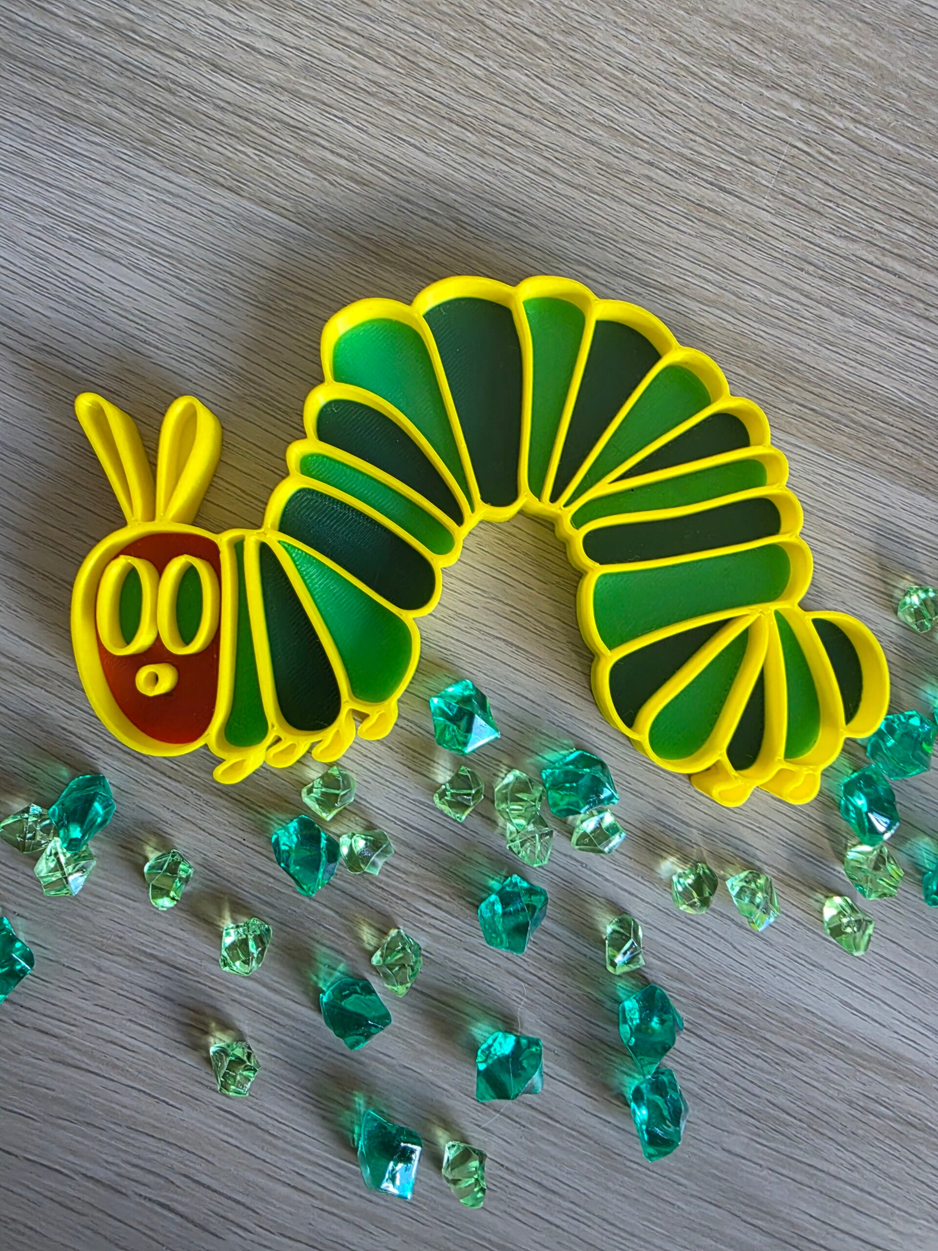 Afmetingen: het rupsje heeft een diameter van 14cm en is 1,3cm hoog.
